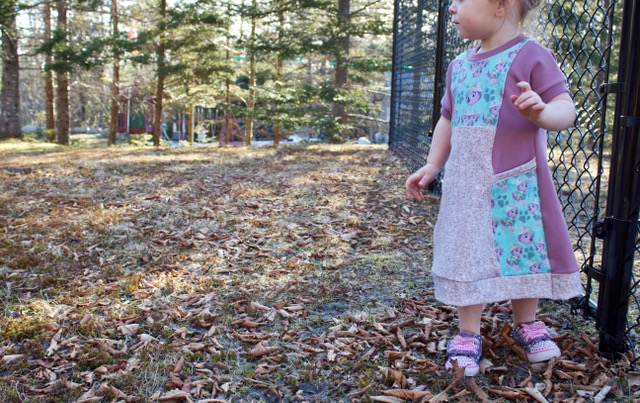 The Children’s Bella dress and tee is a semi-fitted pattern intended for knit fabrics. It comes in a hemmed top length or below-knee dress length with a ruffled or banded hem. There are options for a gathered center front, a solid center front, or a color-blocked front. Optional unique pockets add style lines and functionality. Dolman sleeves can be short, long, or bishop style. This garment can be sewn on a sewing machine or a serger, but does require a sewing machine or coverstitch machine if you wish to hem, gather, and topstitch.